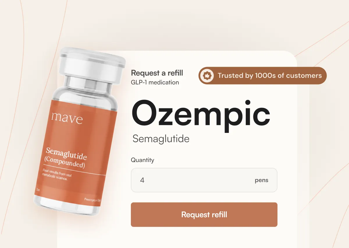 Mave offers GLP-1s exclusively from U.S. pharmacies. If deemed medically appropriate by one of our partner clinicians, a compounded medication may be prescribed. Compounded medications are highly regulated and compounding pharmacies are licensed and inspected by Boards of Pharmacy, but the FDA has not evaluated the medications for safety, quality, or efficacy. Please visit our Safety Page for important safety information. Ozempic® (semaglutide), Wegovy® (semaglutide), Zepbound® (tirzepatide), and Mounjaro® (tirzepatide) are not compounded and are FDA-approved.