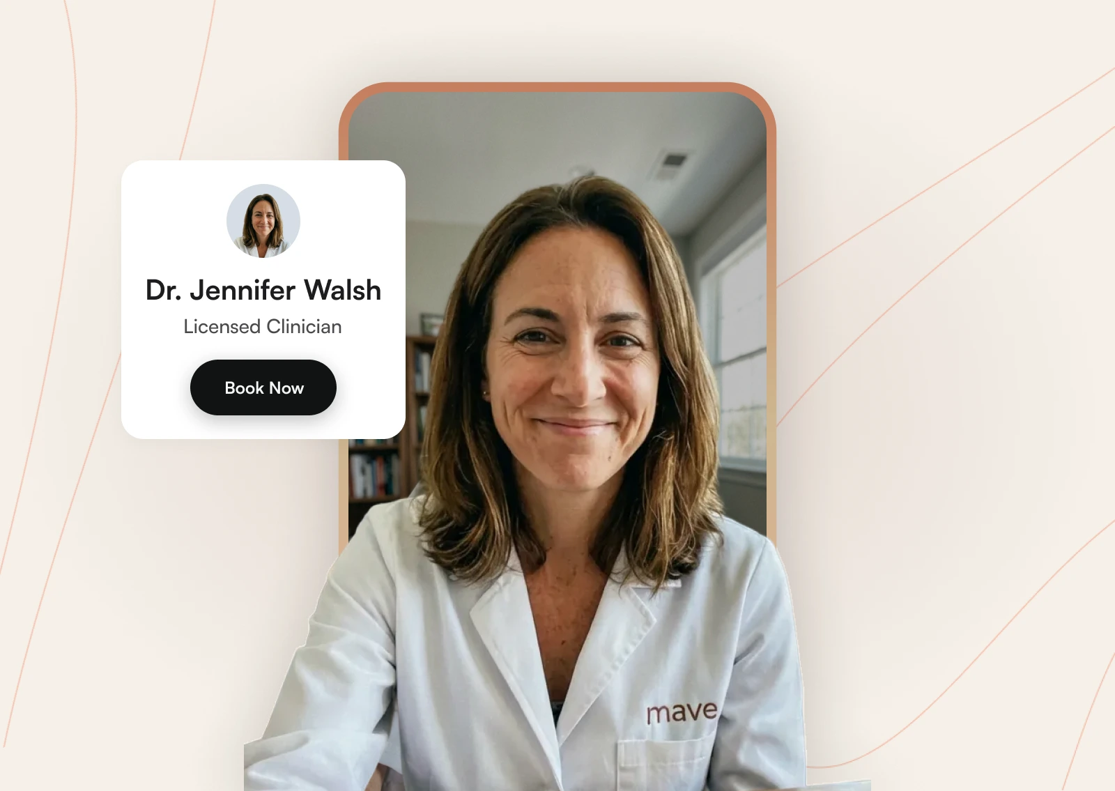 You're never alone with Mave. Our 1,000+ U.S.-based care agents are available every day to answer questions about dosage, side effects, or concerns. Need a clinician? Book a 1:1 virtual appointment right away, often same-day, no insurance required.